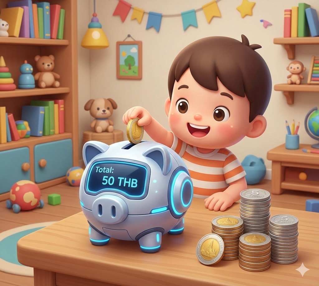 กระปุกออมสินอัจฉริยะ (คำนวณยอดรวมเงิน) | ง่าย | 10 | 2026-02-27 08:40:48 | รายชื่อผู้จัดทำ |