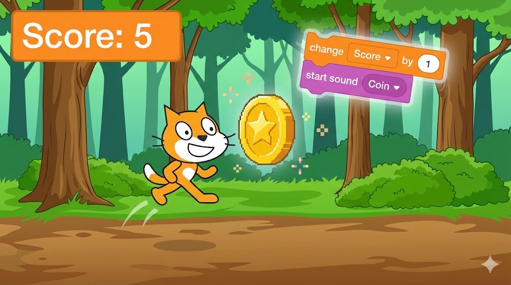 💡 อธิบาย: พอแมวเดินมาชนปุ๊บ เหรียญจะหนีไปโผล่ที่อื่นทันที ทำให้เราต้องตามไปเก็บเรื่อยๆ ครับ