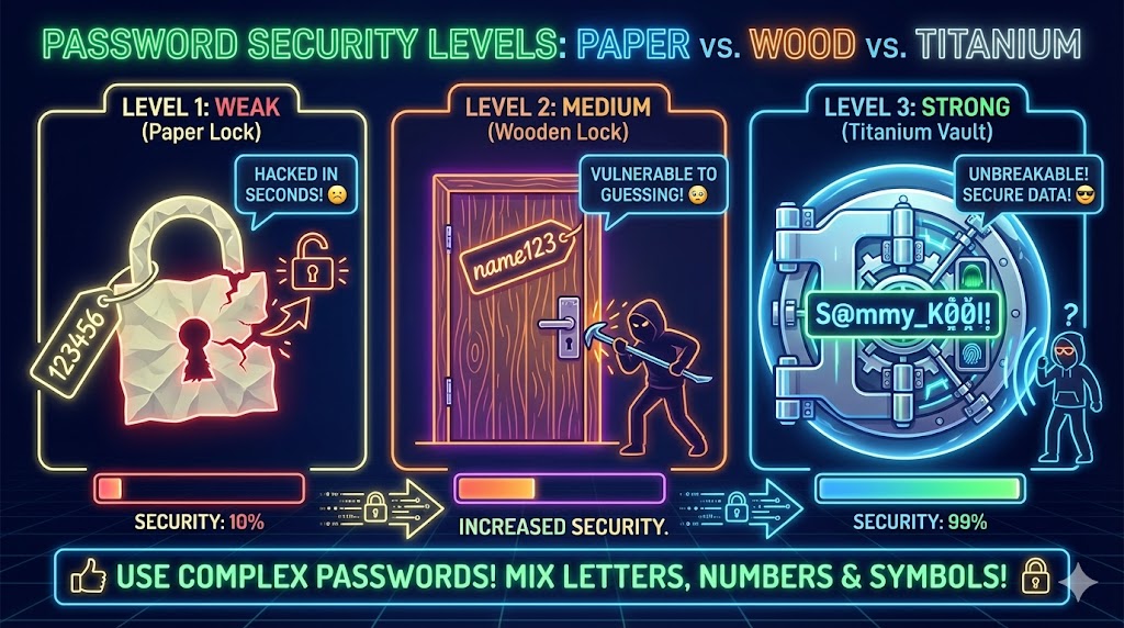 การตั้งรหัสผ่าน (Password) ก็เหมือนการเลือกวัสดุมาทำแม่กุญแจครับ:
